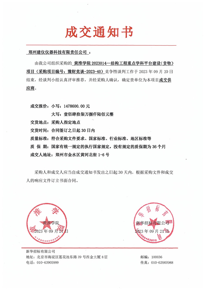下一篇:焦作千葉新材料混凝土液壓機(jī)成交通知書
