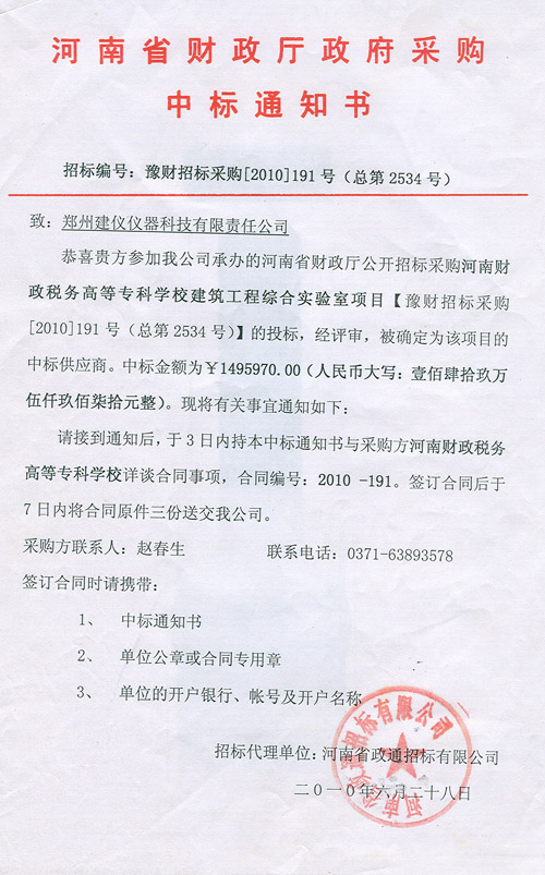 豫財(cái)招標(biāo)采購(gòu)(2010)191號(hào)