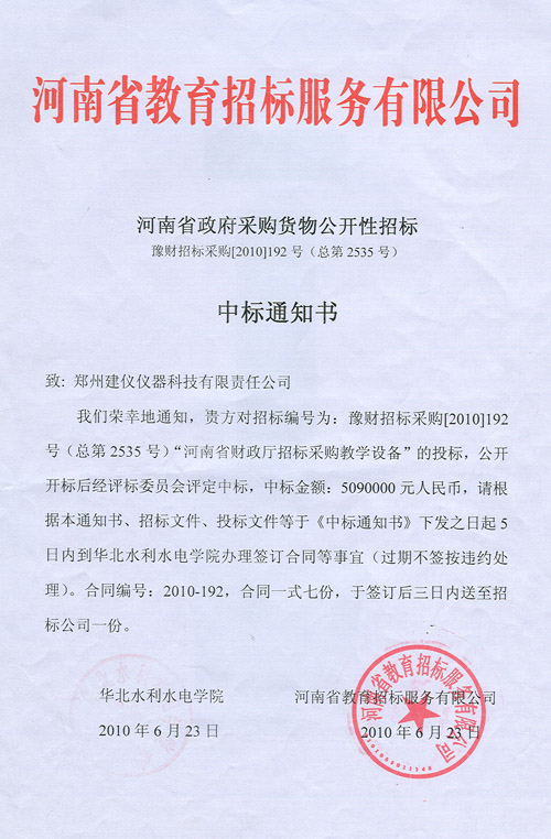 豫財招標采購(2010)192號